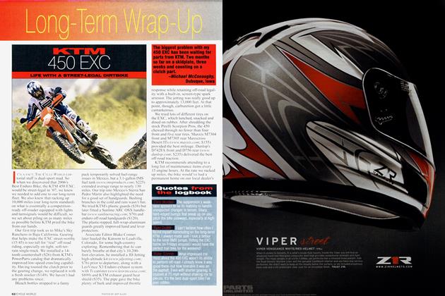 So it was with a heavy heart that we prepared to bid the SV farewell. But fate intervened in the form of CW's own West Coast Advertising Manager Libby Hartung, who purchased the bike from Suzuki. Now, if we can only convince her to let us borrow it from time to time, we'll be set.